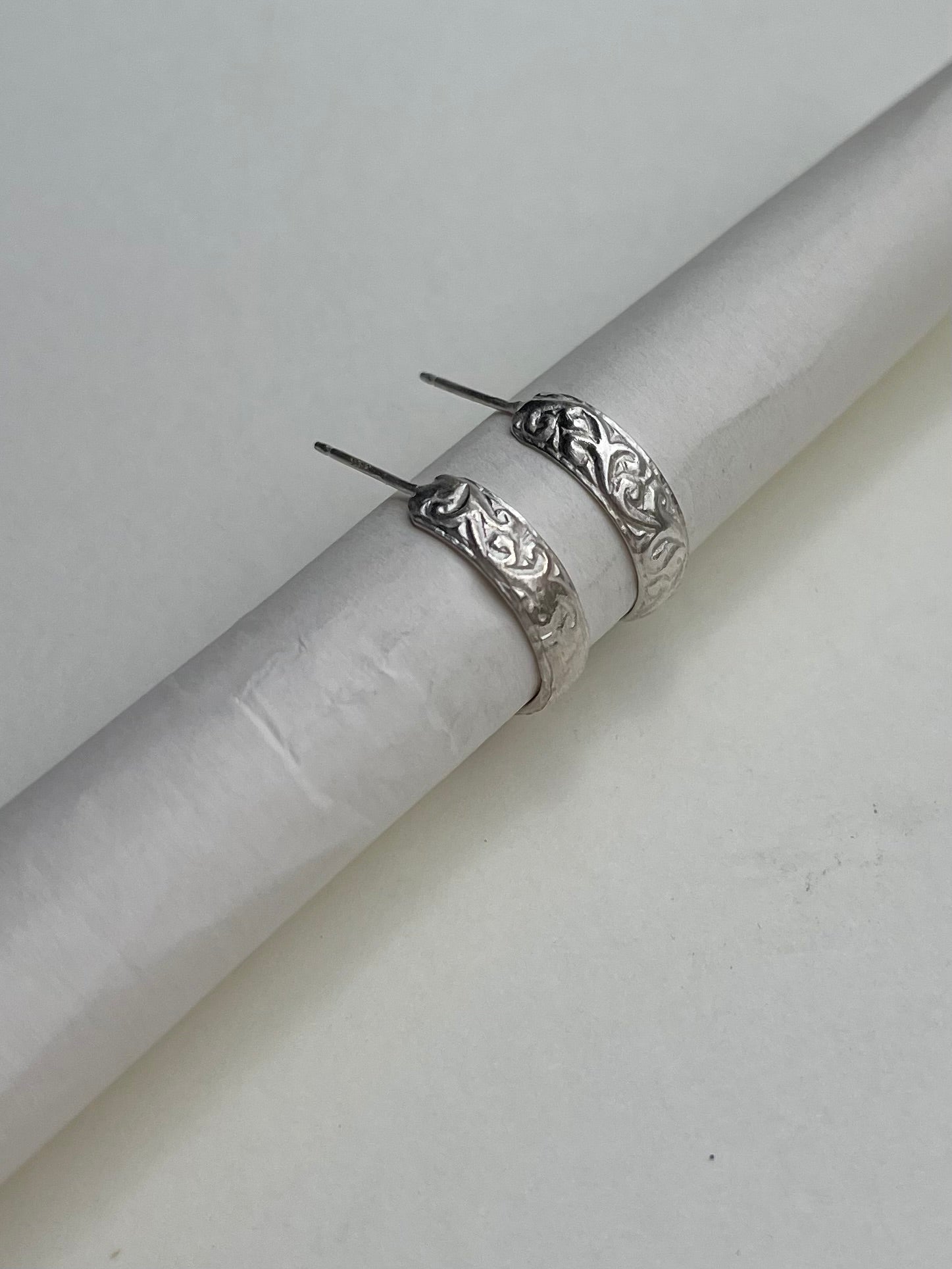 עגילי חישוק עם עיטורים מרוקאיים מסורתיים, בגודל המושלם ללבוש יומיומי, אך עם טוויסט ייחודי הודות לטקסטורה שלהם